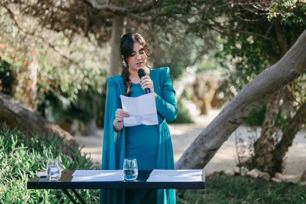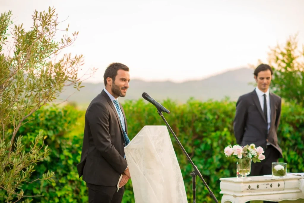 Consejo: Si elegís a alguien cercano para oficiar, aseguraos de que se siente cómodo con el micro, con hablar en público y con el tono que queréis para la ceremonia. Y no lo obliguéis: hay personas que prefieren disfrutar de la boda desde otro lugar.