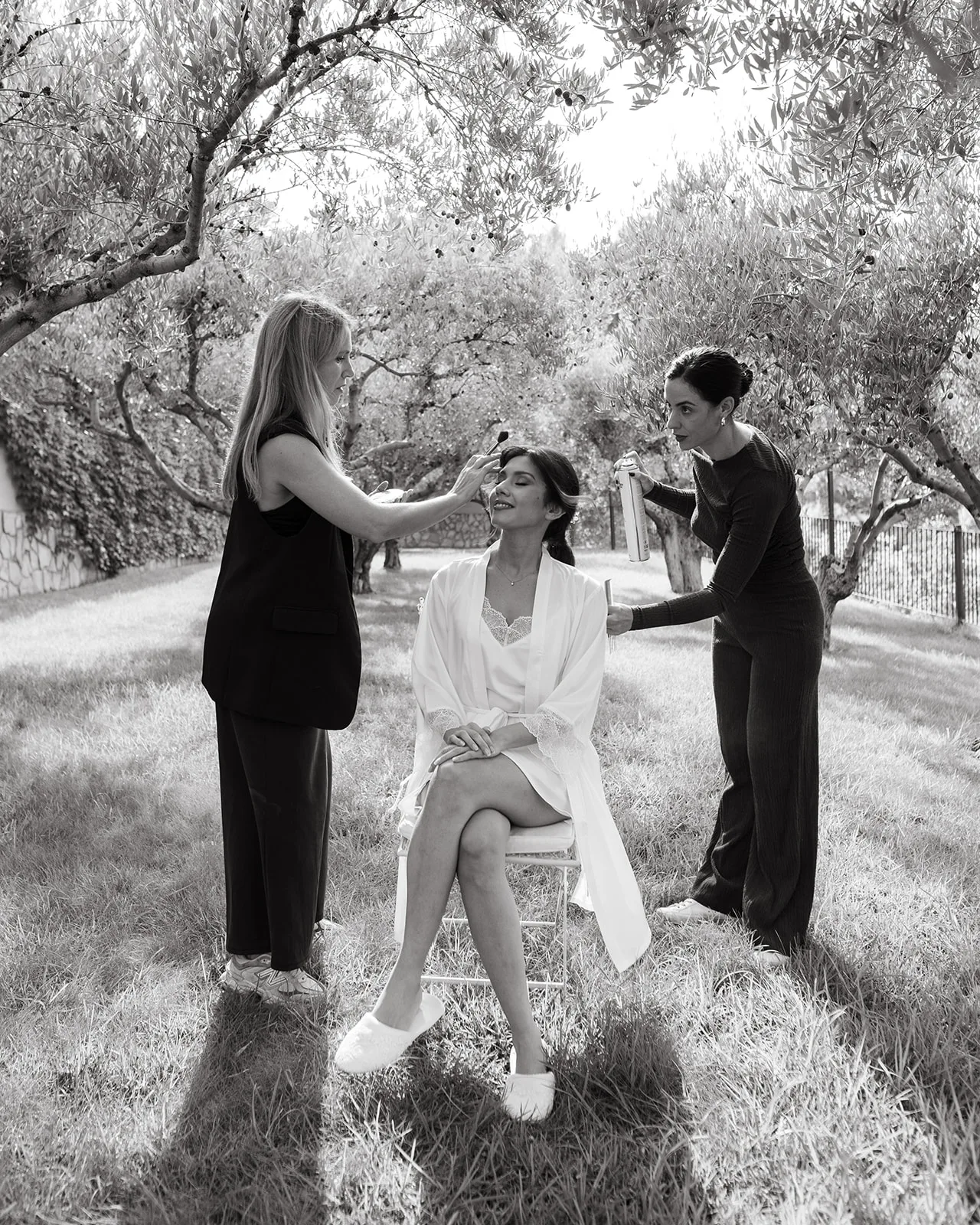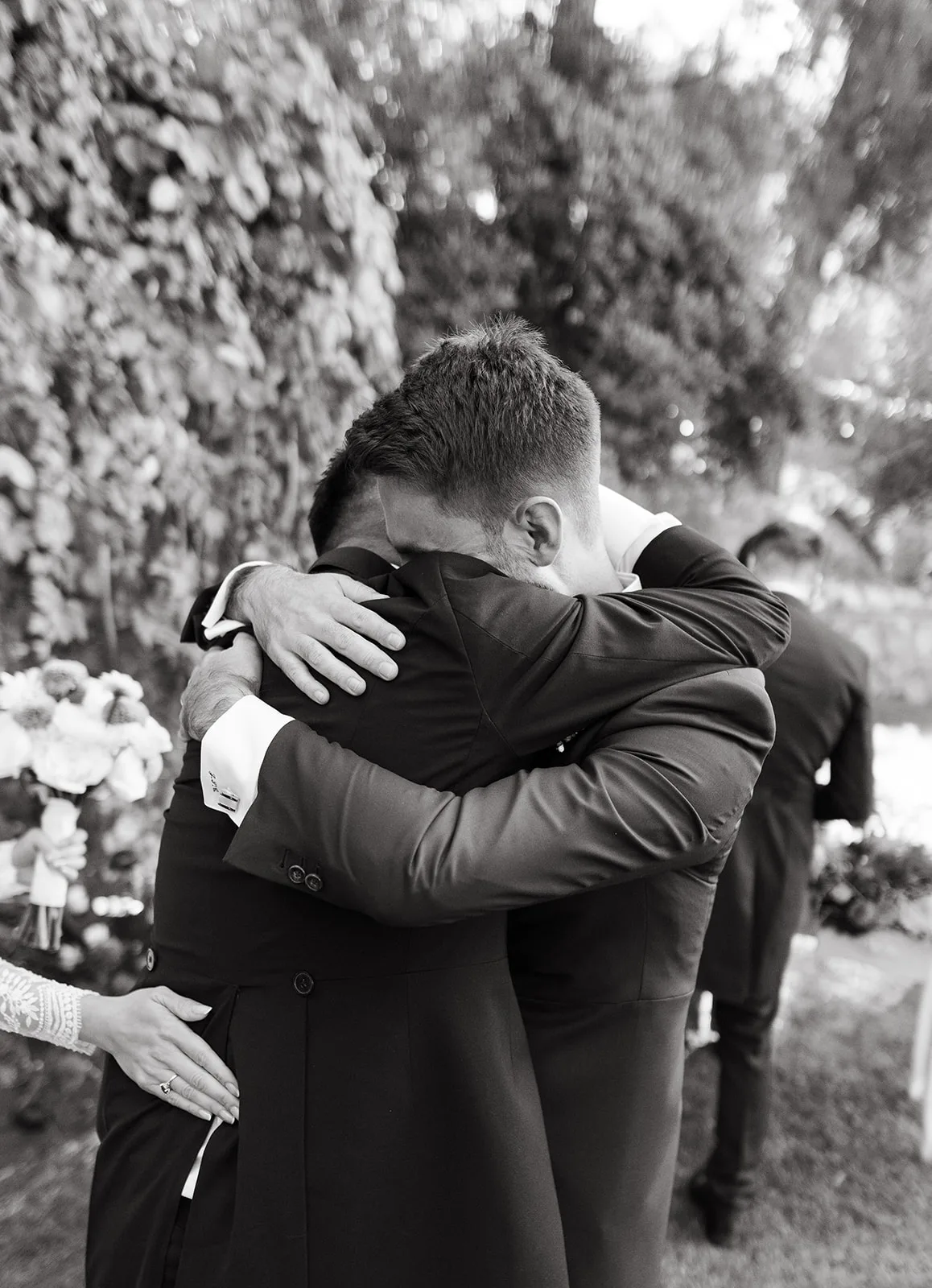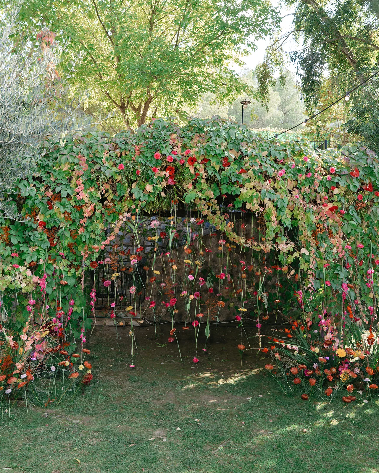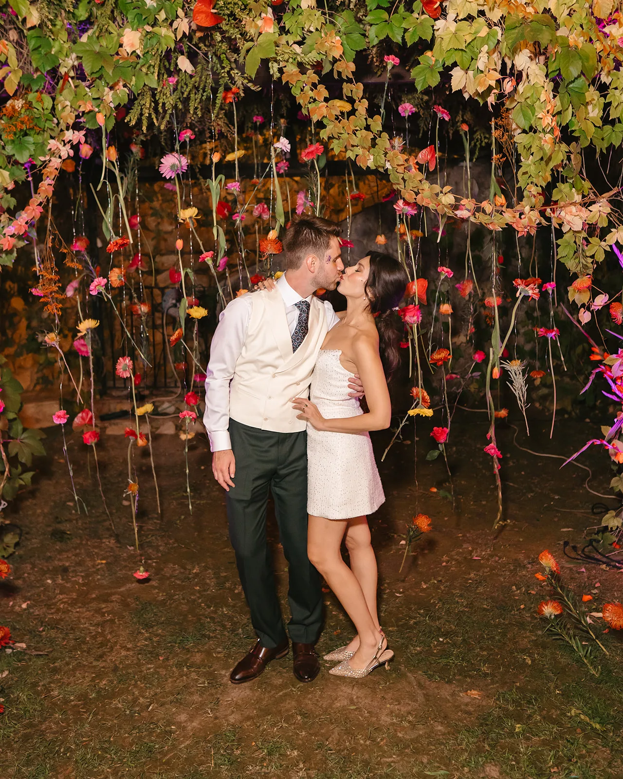 La ceremonia, rodeada de naturaleza, fue profundamente emotiva. Un piano de semicola acompañaba cada momento, mientras los invitados, llegados desde distintos puntos del mundo, se dejaban llevar por la sensibilidad del instante. El pasillo, enmarcado por una florística salvaje y colorista, llevado a la realidad por el gran equipo de Bésame Mucho, guiaba hacia un altar que parecía surgir de la propia vegetación de un cuento de hadas.