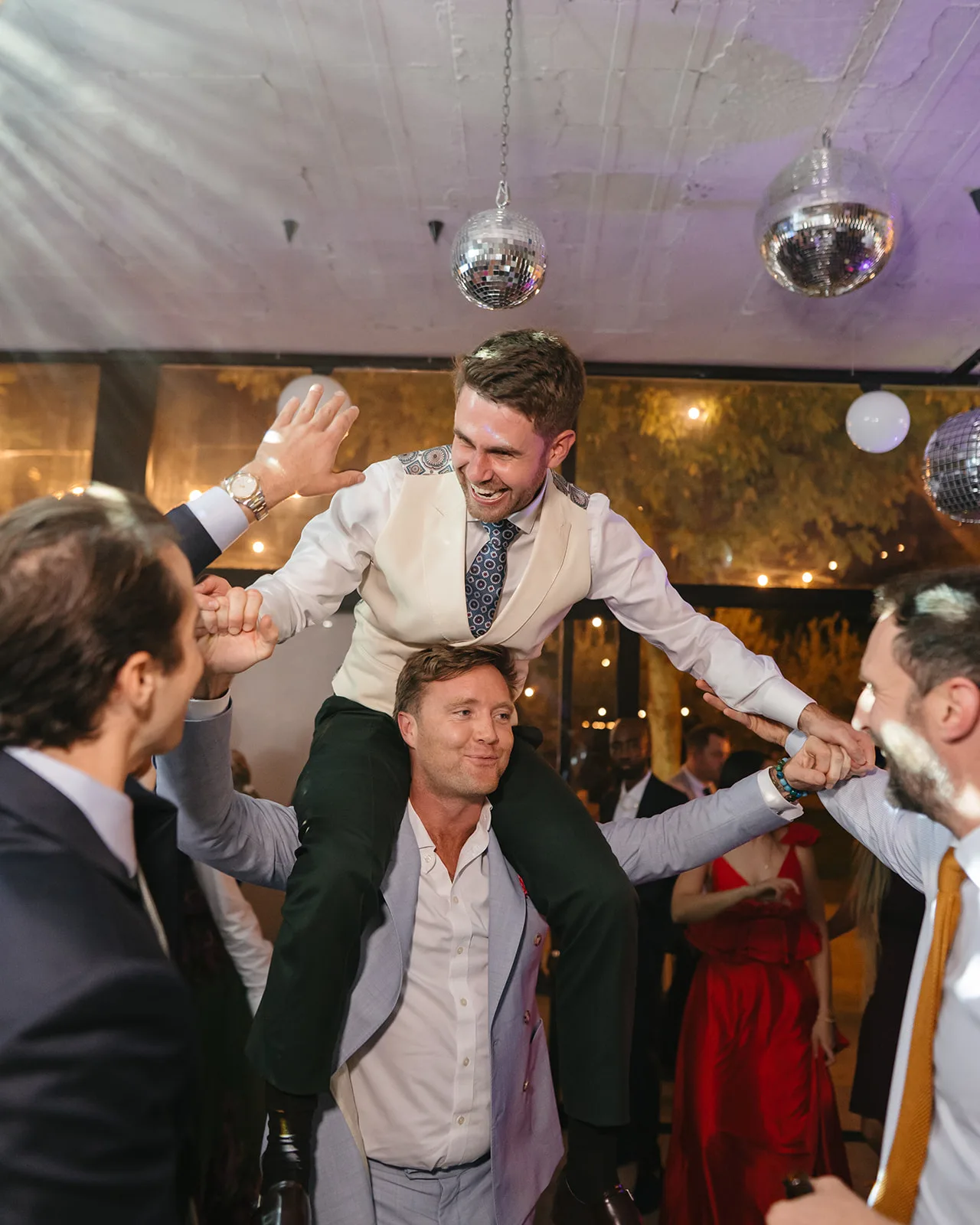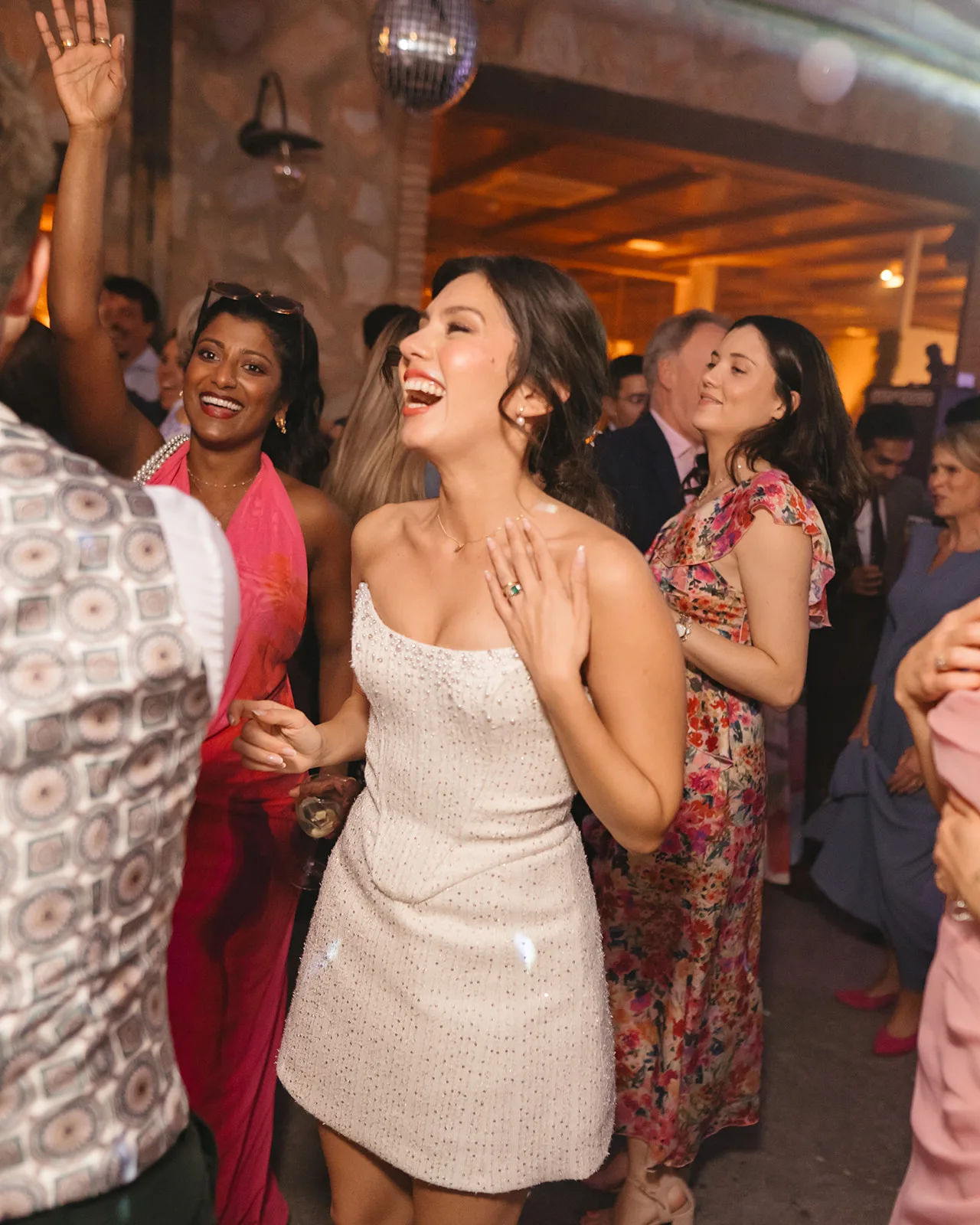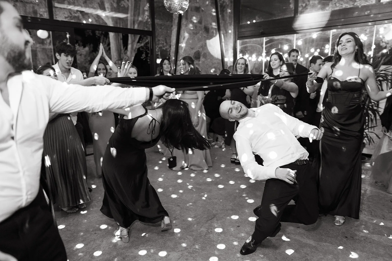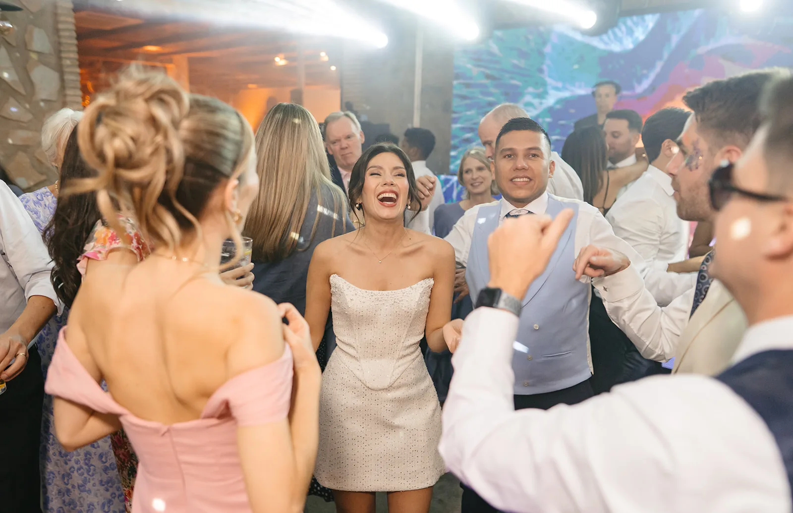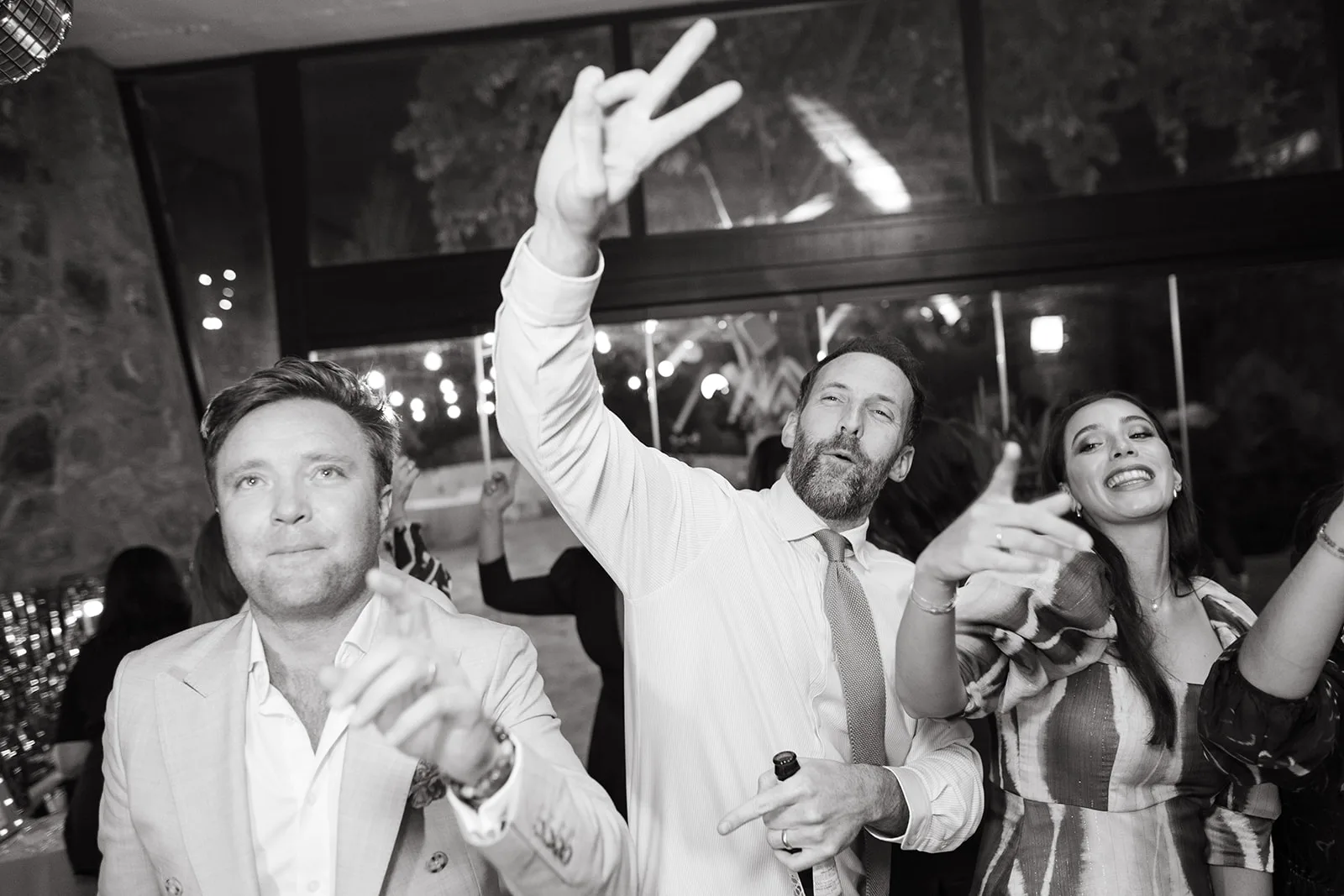 Tras el “sí, quiero”, el cóctel tomó un giro inesperado. El sonido de un saxo en directo rompía la calma y convertía el momento en algo mucho más vivo, casi improvisado. Los invitados no tardaron en dejarse llevar, bailando entre copas y risas, anticipando lo que estaba por venir.
