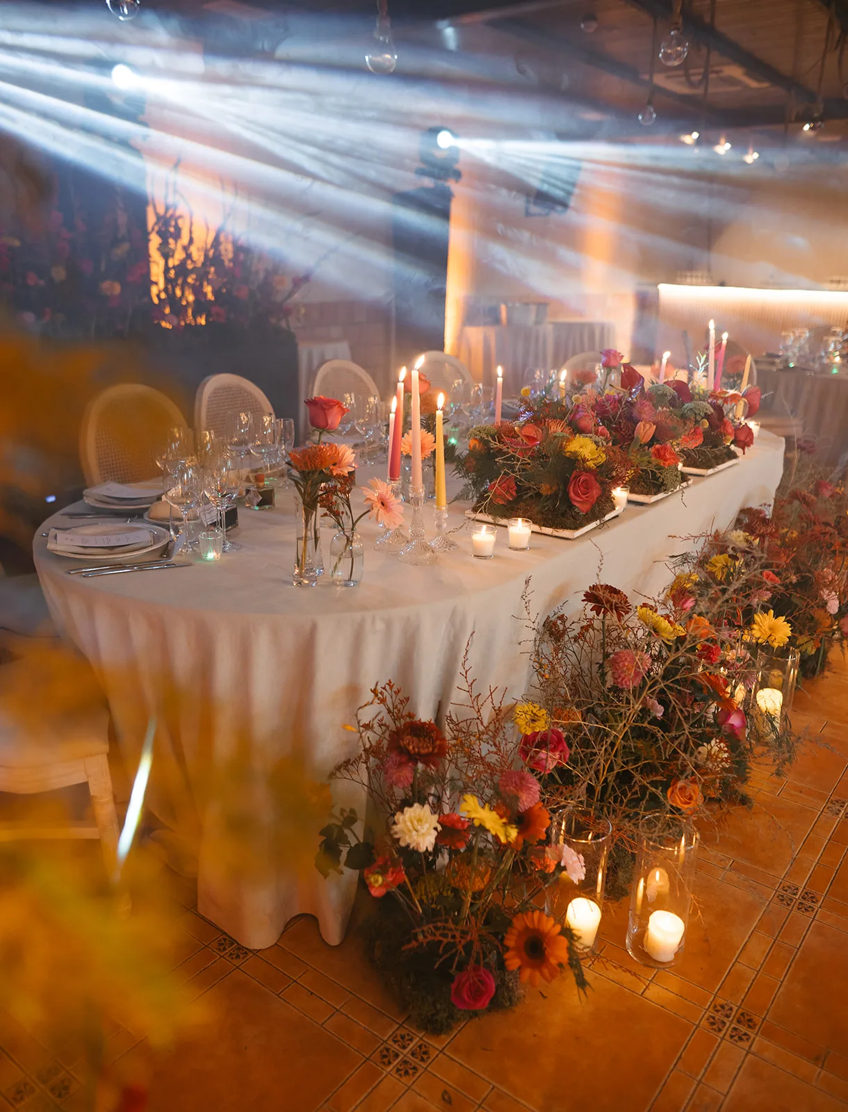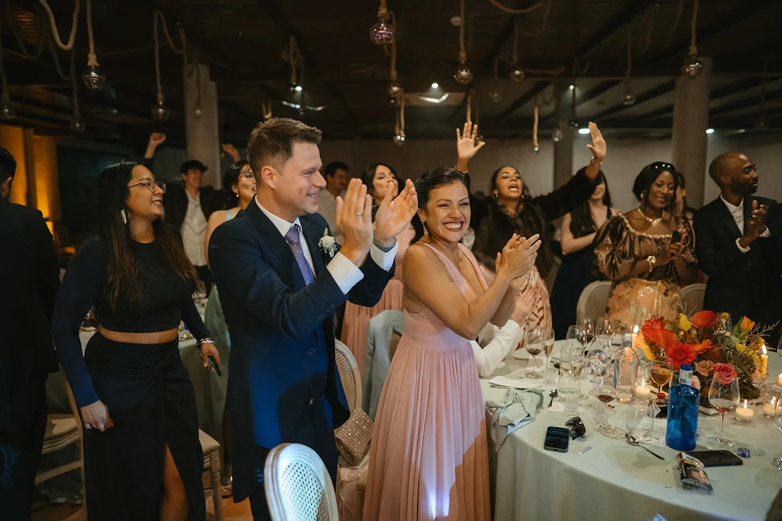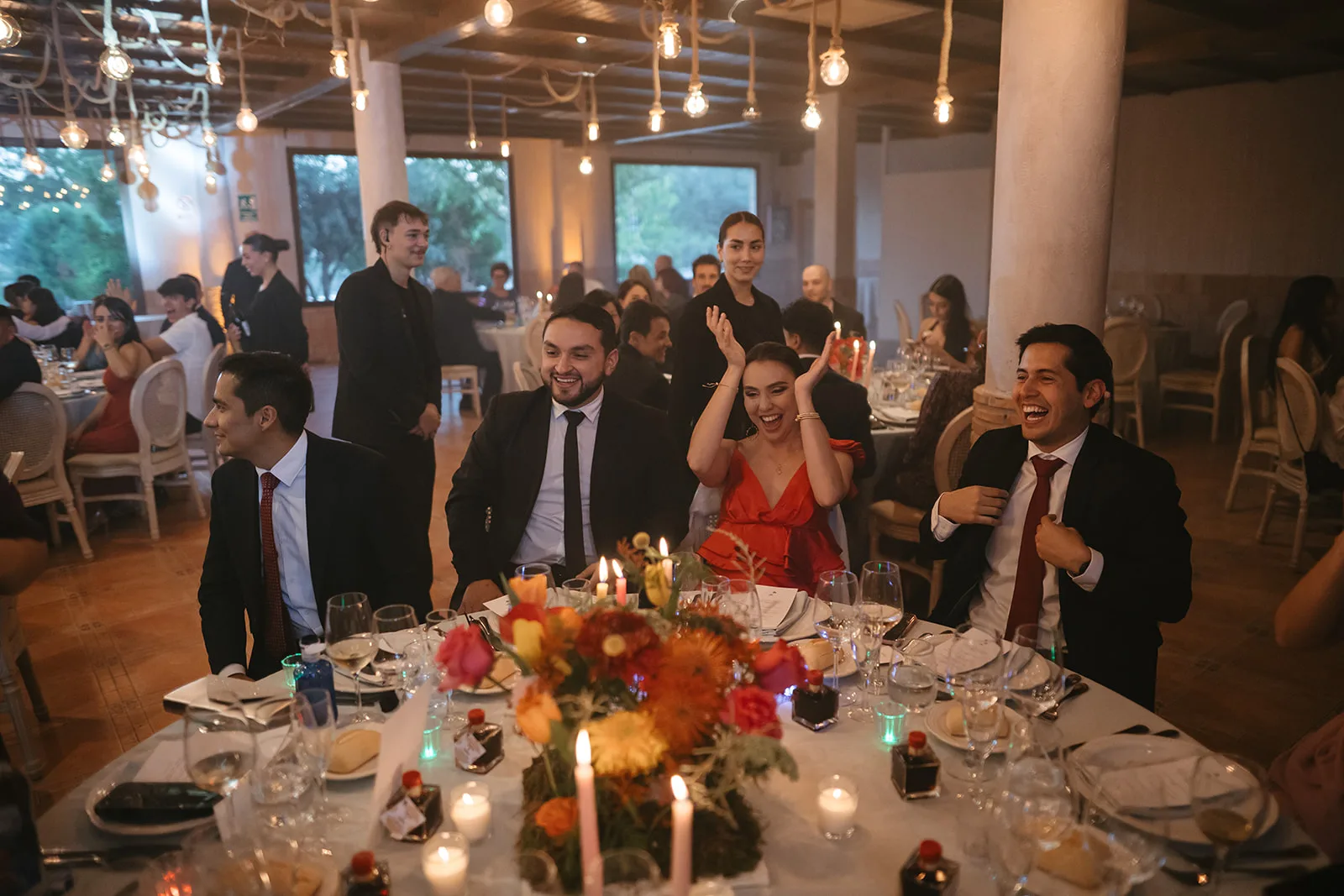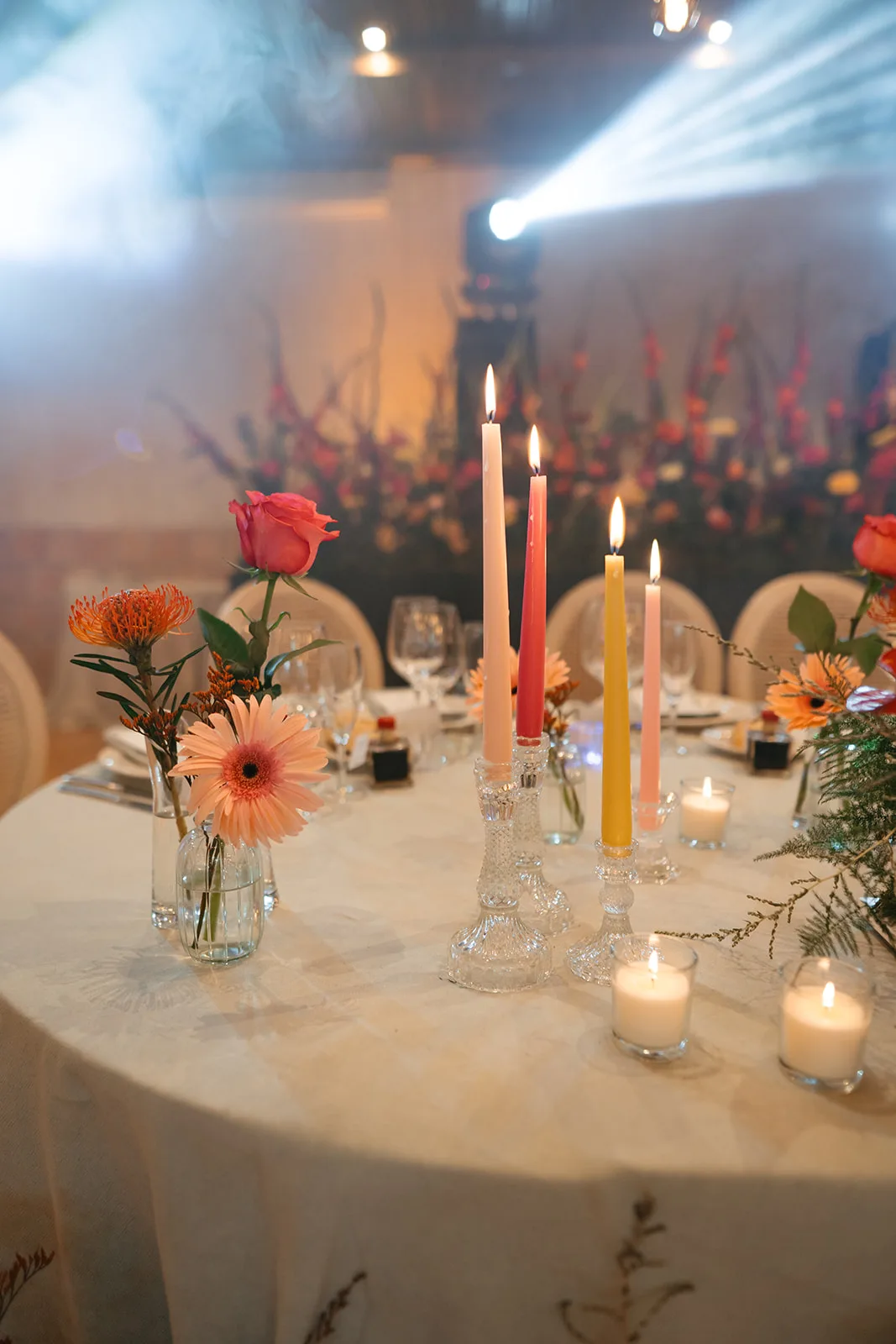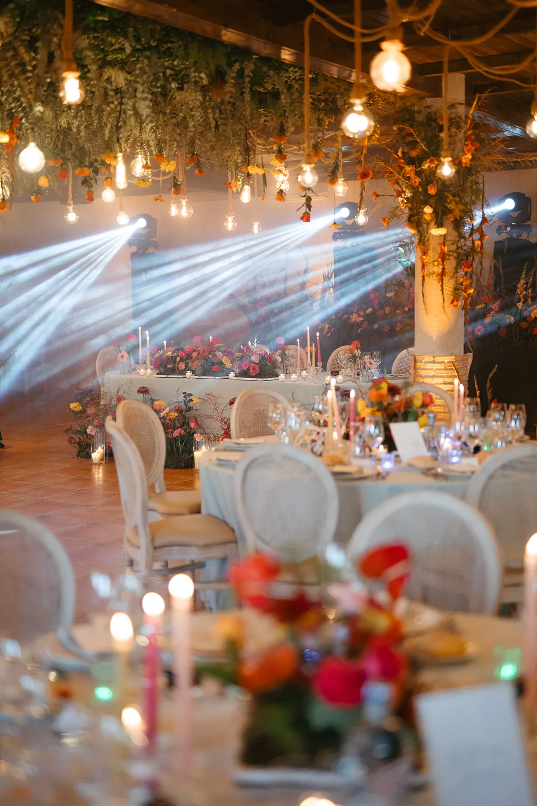 Las mesas, elegantes y cuidadosamente vestidas, convivían con una propuesta floral llena de movimiento y color, incluso en las velas Sobre ellas, pequeños guiños personales y una iluminación cálida que, al caer la noche, envolvía todo en una atmósfera vibrante y llena de intención. Los discursos aportaron profundidad y emoción, creando un ritmo que alternaba entre la risa y la lágrima.