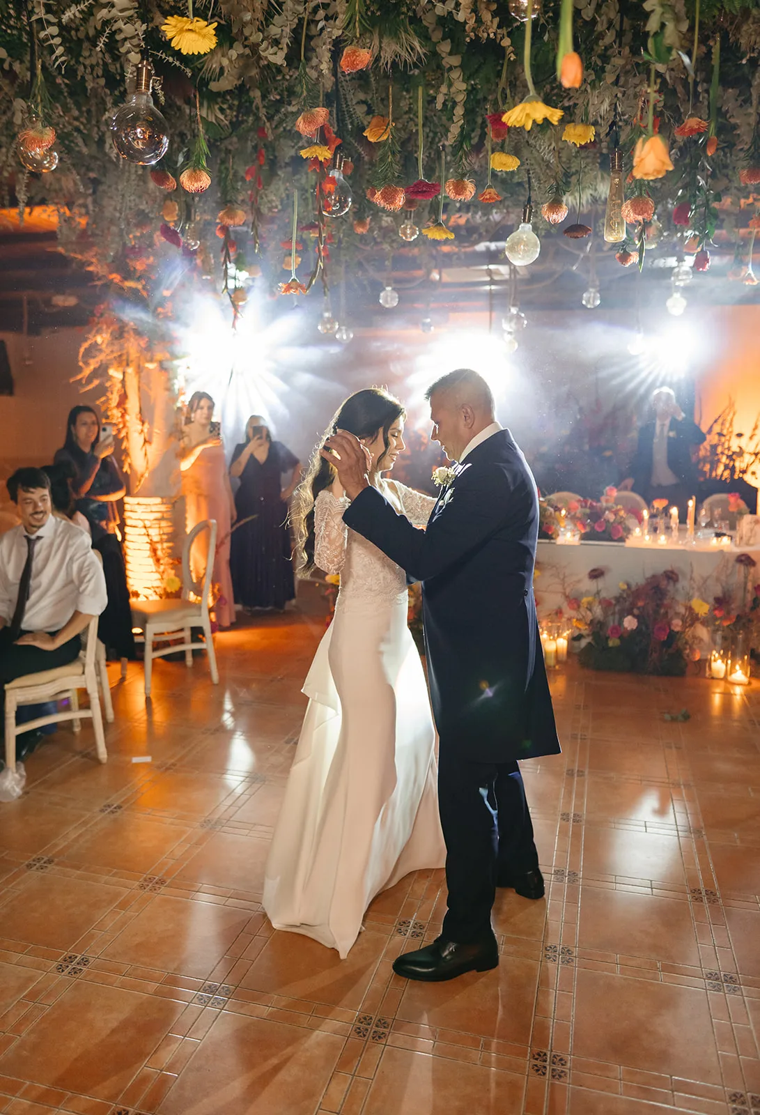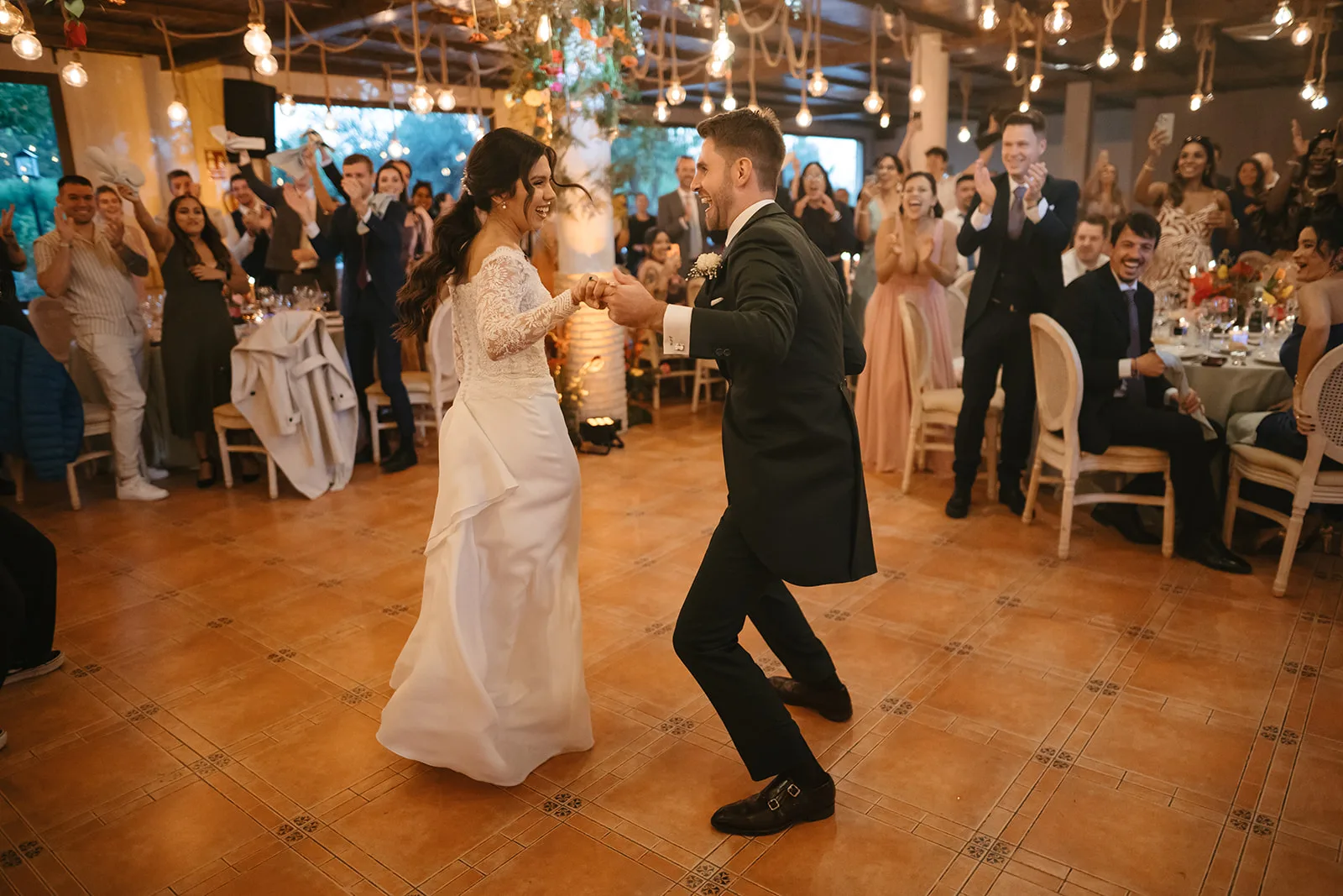 La apertura del baile comenzó con una tradición profundamente arraigada: María bailando con su padre. Un instante íntimo, emotivo, que dio paso a una coreografía perfectamente ensayada junto a James. Y entonces, sin transición, la pista se llenó.