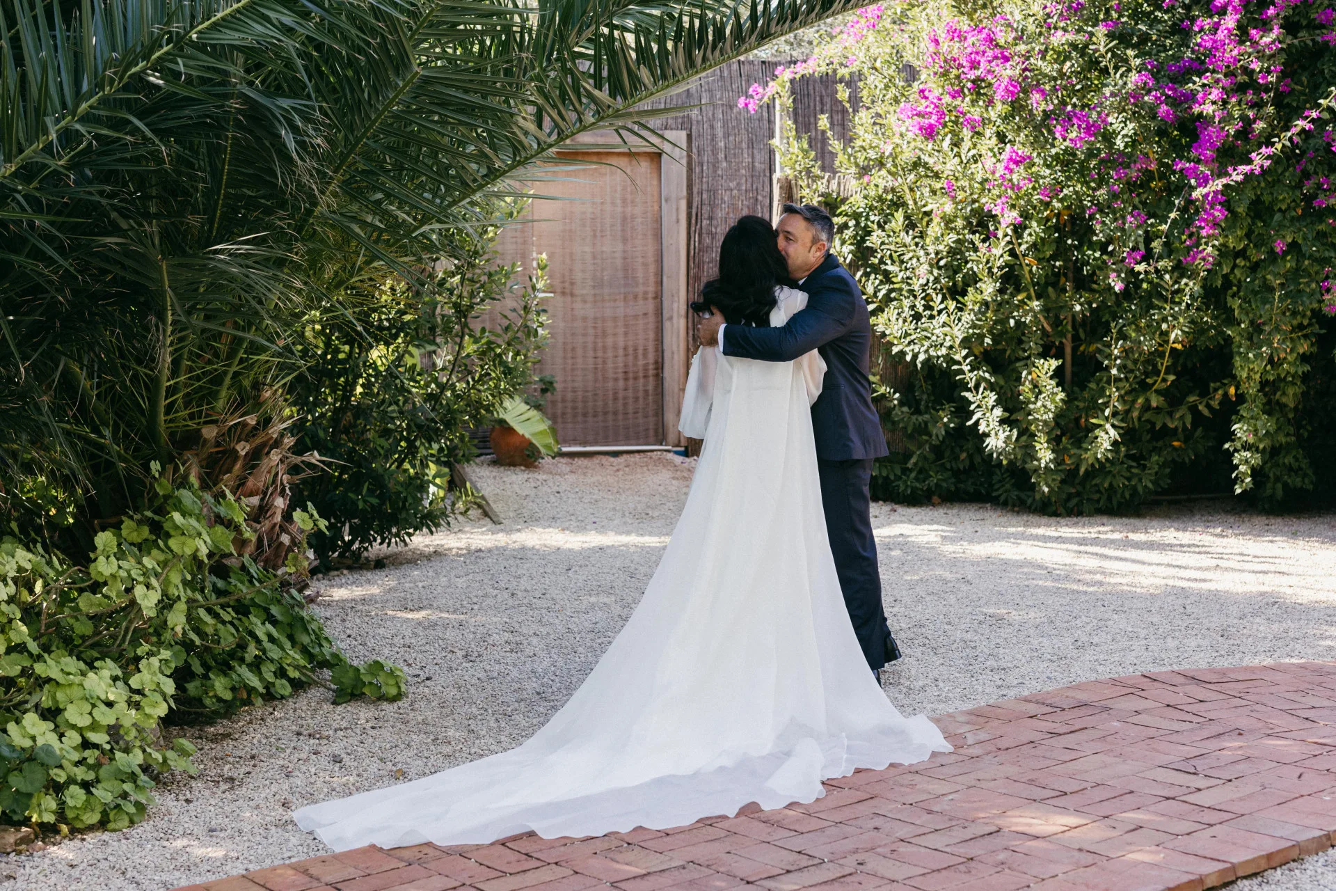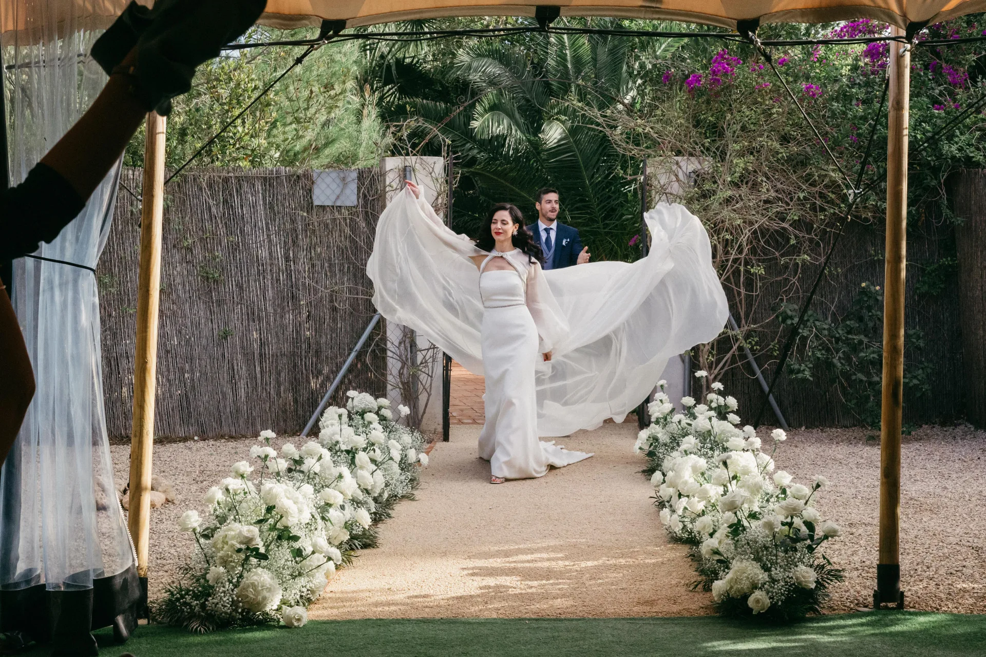 La ceremonia se celebró un 22 de noviembre en la finca Siempre Verde, en Murcia, donde tuvo lugar todo el evento. Fue una ceremonia íntima, relajada y llena de amor. A continuación, y pese a la fecha, pudieron disfrutar de un cóctel al aire libre, servido por The Wedery Catering, con música en directo que acompañó el ambiente a la perfección.