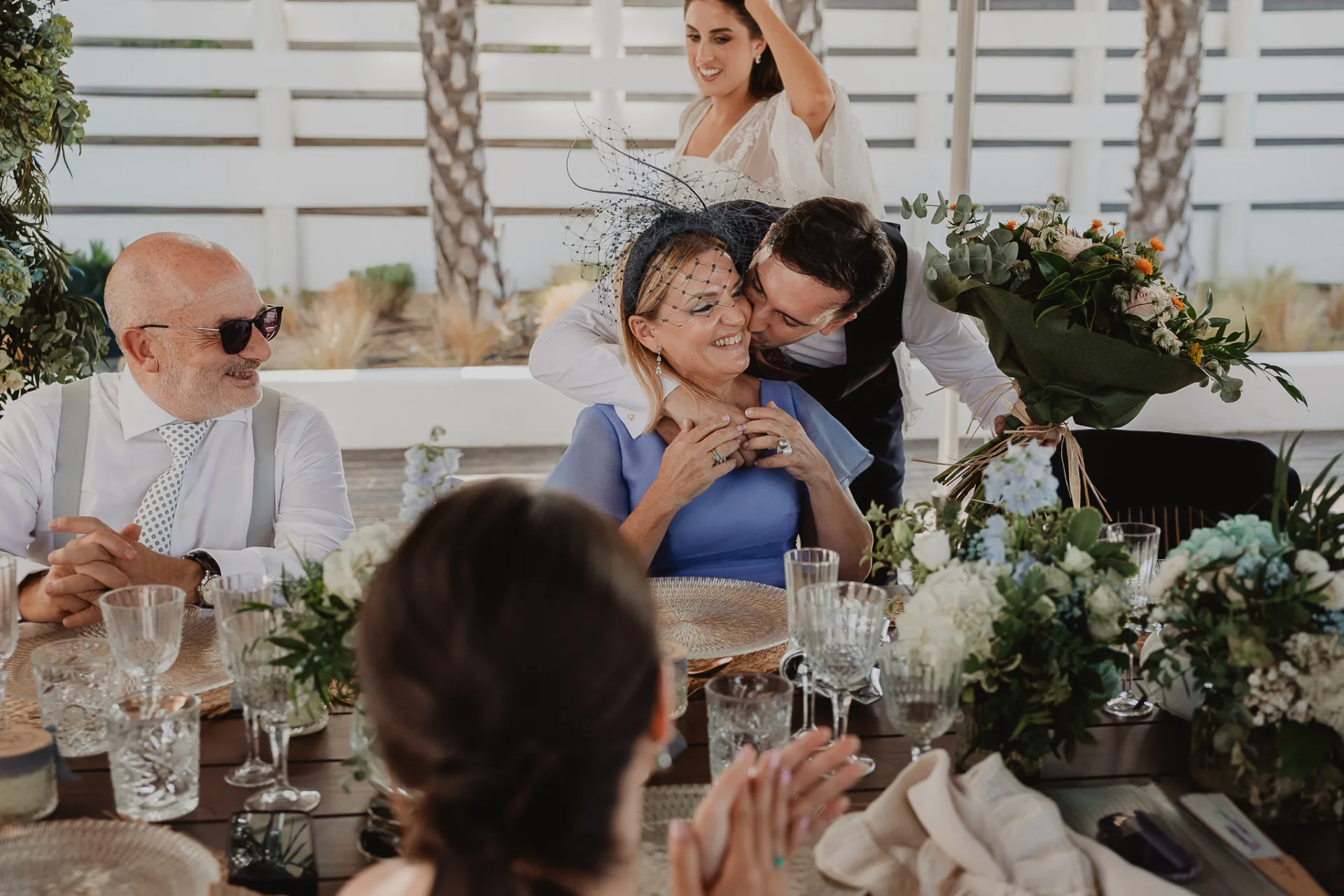 Vestimos las mesas con materiales alquilados en Mafesa, y las flores —obra de Emy Floristas— pusieron el broche perfecto. En la palapa del restaurante, el banquete se sirvió en formato sentado, con discursos, emociones sinceras y una energía de celebración que fue creciendo con cada brindis.