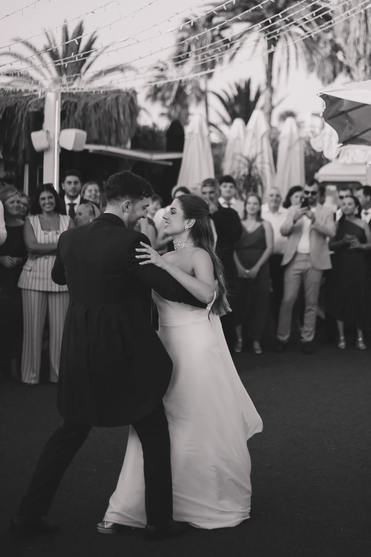 La fiesta arrancó con el primer baile y continuó con el concierto en directo de Sótano 14, que puso a todos en pie. Manuela lanzó el ramo justo antes de que el DJ de No Typical Sound tomara el relevo y encendiera aún más la pista con una Hora Loca desatada.